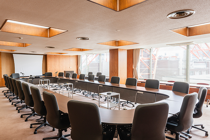 大きな窓いっぱいに東京タワーが見える会議室です。自然換気可能な窓が4ヶ所あり、Wi-Fi/有線LANも利用可能です。5S-1・5S-2共用の、受付に便利な前室(フロア図で確認する)を無料でお使いいただけます。